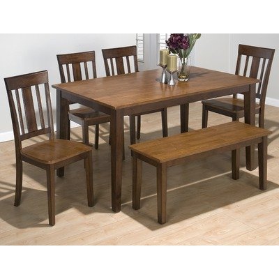 Features: Traditional StyleWood TopSolid Rubberwood construction Sabre base leg Rectangular shape Finished in Kura Espresso and Canyon GoldSeats 6 Specifications: Overall dimensions: 60"W x 36"D.../ Jofran Rectangle Casual Dining Table in Kura Espresso and Canyon Gold Finish / Table With Bench
